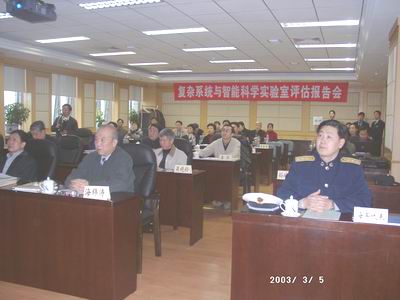 各位专家在自动化所听取实验室工作汇报 2003年3月5日-6日,“2003年度重点实验室评估”专家组来到自动化研究所进行5年一次的重点实验室评估。党委书记张平、副所长谭民、戴汝为院士、复杂系统与智能科学实验室主任王飞跃、副主任易建强,机关各办主任及复杂实验室全体工作人员参加了评估会议。