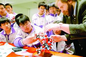 英国琼斯博士指导北京中学生搭建DNA模型
