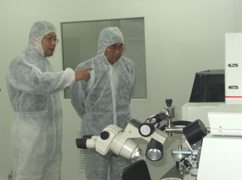 之后,白春礼副院长一行参观了物理所微加工实验室,认真听取了冯稷研究员关于实验室建设和研究状况的汇报。指出物理所微加工实验室可以做为国家纳米中心的核心实验室为中国纳米科技研究做出更大贡献。