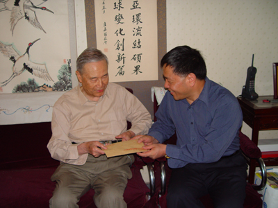 6月2日下午,中国科学院副秘书长沈保根代表中国科学院和学部主席团向叶笃正先生表示祝贺并带去路甬祥院长的贺信。路院长在贺信中写到:欣悉您荣获第四十八届国际气象组织奖,诚致热烈的祝贺。这是对您半个多世纪致力气象科学研究,为全球变化、大气环流和气候变化研究作出的杰出成就的公正评价,也是对以您为代表的中国大气科学研究成就的高度评价。这不仅是您个人的荣誉,也是大气所的荣誉,中国科学院和中国科技界的光荣,也是对中青年大气科学工作者的鼓舞和鞭策。希望您保重身体,并继续为培养青年一代大气科学工作者,为我国的气象与环境科学,为全球变化研究作出新的贡献。 |