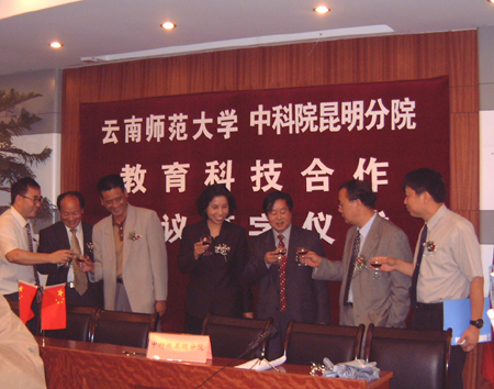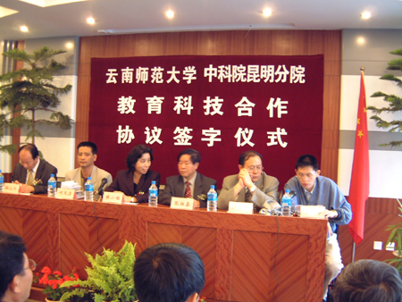 2003年6月4日下午,酝酿数月的昆明分院云南师大教育科技长期合作协议在昆签订 2003年6月4日下午,酝酿数月的中国科学院昆明分院与云南师范大学教育科技长期合作协议,在昆明正式签订。
