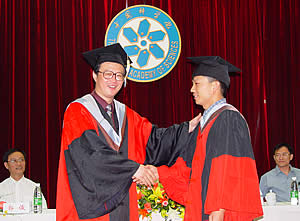 有70名应届毕业的研究生身着博士或硕士服庄严地走上主席台,接受陈勇院长颁发的博士、硕士学位证书。陈勇、吕晓澎、杨新潮等在表祝贺之余,殷殷寄语学子们把个人利益和国家利益结合起来,做德才兼备的一代新人。