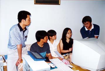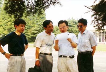 地面处理组的同志正在讨论问题(右起:张冰尘、黄倩、詹学丽、李鹏、唐禹)