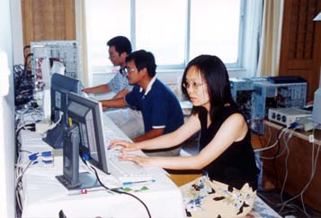 地面处理组的黄倩、张冰尘、唐禹正在紧张工作