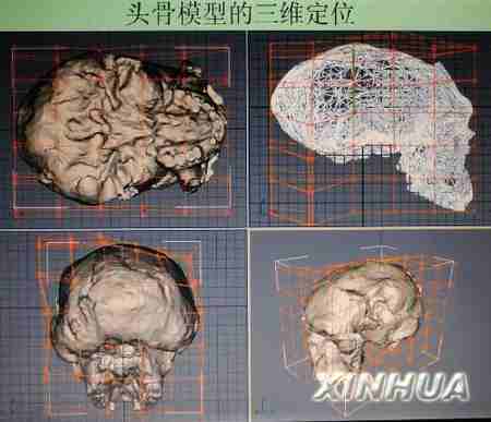 8月15日拍摄的湖北“郧县人”2号头骨模型的三维定位图。