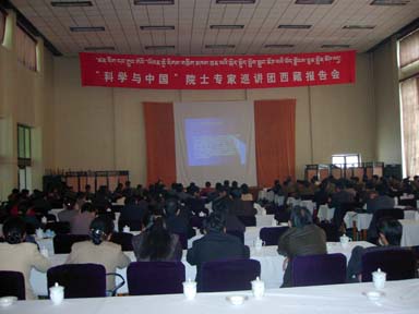 报告会由西藏自治区科技厅党组书记、厅长多吉次仁主持。区党委、区政府、区人大、区政协、西藏军区、武警总队以及拉萨市有关科研机构等单位的干部和科研工作者近300人凝听了院士们的报告。