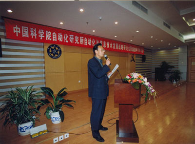 谭民副所长在主持会议 2003年10月16-17日,“自动化与信息技术发展战略研讨会暨自动化研究所2003年学术年会”(CASIA CAIT)在中科院自动化所举行。CASIA CAIT由中科院自动化所主办,自2001年开始每年举办一次,每年吸引了大量国内外此领域知名学者、专家的注意和参与。