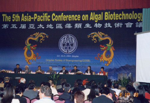 亚太地区藻类应用学会成立于1991年,是亚太地区针对应用藻类为人类健康和环境服务的国际间学术组织。亚太地区藻类生物技术会议每三年举行一次,前四届盛会分别于1991年、1994年、1997年、2000年在马来西亚、日本、澳大利亚和中国香港举行。在本届盛会上,日本海洋生物技术研究所前所长宫地重远教授、“微藻消除二氧化碳和室温气体”国际网络负责人John Benemann、亚太地区应用藻类学会主席Avigad Vonshak、美国前藻类学会主席Coleman Annettee、美国康涅狄格大学Yarish charles、美国斯坦福大学Arthur Grossman、亚太地区海洋生物技术学会前秘书长Yuan Kun Lee、新加坡国立大学李源昆、Steven Feng Chen、中国科学院水生生物研究所刘永定教授、国际应用藻类学会主席Johan Grobbelaar、以色列微藻生物技术研究所Boussiba Sammy、印度微藻生物技术所Thomas Sebasian和中国科学院海洋研究所秦松教授等分别从“微藻消除二氧化碳和室温气体”国际计划、国际微藻生物技术的发展现状和趋势、大型海藻在消除富营养化方面的工作进展、藻类与人类健康的关系、利用生物反应器技术生产藻类高附加值产品的进展、微藻生物技术在消除水华与固沙和空间生命支持系统中的应用、藻类光生物反应器的应用、藻类在整合养殖中德作用、藻类生物活性物质提取及其制药工程、藻类基因工程和遗传转化体系等方面做了大会报告。大会还分别举行了“藻类制氢和生物燃料” 卫星会议和“兰太蓝藻生物技术论坛”。来自美国、德国、法国、英国、日本和中国等28个国家和地区的300多名中外科学家荟萃一堂,就“藻类--为了人类的健康和环境”这一主题进行了研讨,并就最新研究成果进行了交流。大会还评选出了“优秀青年学者报告奖”和“优秀青年学者墙报奖”。