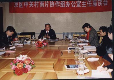 为了让会议能取得好成效,协作组组织单位的办公室主任龚惠玲和房自正作了精心策划安排。会场选择在极富现代气息和科学文化氛围的文献情报中心“十一维茶馆”,让轻柔的音乐做背景,桌上摆放美丽的鲜花,每个人面前有热热乎乎的好茶,还伴随瓜子和糖果,更邀请来盛况空前的座中嘉宾:他们是办公厅主任蒋协助先生、文献情报中心党委书记沈颖先生、自动化所党委书记张平先生,办公厅文书处、宣传处和信息处田思维、孙殿义、王生林三位处长,当然,还有来自京区南片协作组单位的各位办公室主任。大家在紧张繁重的工作中抽时间出席,显示出对此次活动的高度重视和支持。