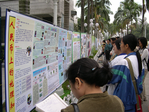 今年“科技活动周”与“地理活动日”一起举行。据悉,“地理活动日”每年一个主题,今年的主题是:中学地理教育与广东文化大省建设。当天既展出图文并茂的地理科普专栏,也举行中学生地理性学习成果演示报告。