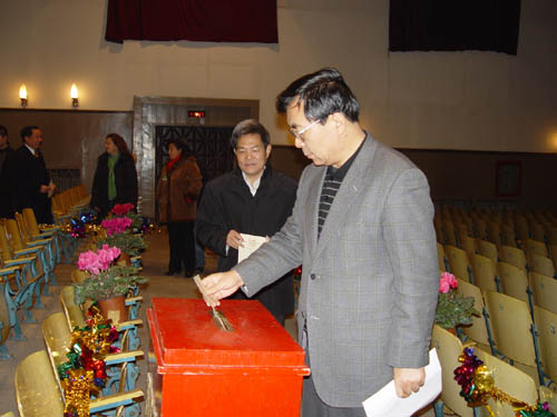 12月10日,中国科学院作为三里河地区三选区投票站,迎来了包括中国科学院在内的二十多个单位的三千多名选民在此投下自己庄严的选票。8点30分,中科院副院长白春礼、党组副书记郭传杰等冒雪来到投票站,认真地在介绍代表候选人情况的展板前了解候选人的情况,随后来到验证处、发票处、解说处领取自己的公民选票。他们在听取工作人员介绍的填写注意事项后,仔细地在选票上进行填写,随后在投票箱前投下了自己庄严的一票。 12月10日,中国科学院作为三里河地区三选区投票站,迎来了包括中国科学院在内的二十多个单位的三千多名选民在此投下自己庄严的选票。8点30分,中科院副院长白春礼、党组副书记郭传杰等冒雪来到投票站,认真地在介绍代表候选人情况的展板前了解候选人的情况,随后来到验证处、发票处、解说处领取自己的公民选票。他们在听取工作人员介绍的填写注意事项后,仔细地在选票上进行填写,随后在投票箱前投下了自己庄严的一票。