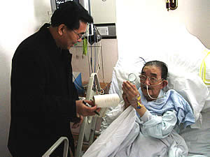 在医院,白春礼副院长详细询问了贝老的病情,一再叮嘱他要安心养病,并祝他早日康复出院。由于贝老的身体原因,他与白春礼的见面成了一次没有语言的对白。白春礼把每一点问候、每一句祝福都清晰地写在纸上,贝老读完后,双手合十,激动地向中科院领导表示感谢,他还与白春礼互相祝福新春佳节。