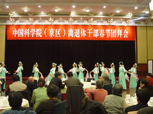 随后各院所老年文艺团体为到会的老同志献上了精彩的文艺节目,中科院离退休干部局局长吴保祖主持了离退休干部春节团拜会。 |