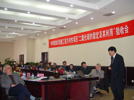 中科院知识创新工程方向性项目“二氧化碳的固定及其应用”通过国家验收 由中国科学院高技术研究与发展局主持召开的知识创新工程方向性项目——二氧化碳的固定及其应用验收会于2004年2月17日在蒙西集团举行。以中科院院士沈之荃为组长,中科院院士黄志镗、北京大学教授李福绵、北京化工大学教授焦书科、中科院化学所研究员习复、中科院成都有机所所长索继栓和吉林大学教授姜振华为成员的专家组在听取了项目介绍及课题验收汇报后,实地考查了蒙西集团公司与长春应化所合作建设的项目生产线,对该项目进行验收审议。