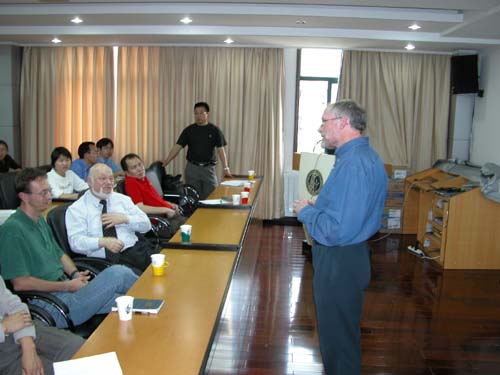 英国鱼类生态学家R.J.Wootton访问水生所。 4月28日下午,英国Wales 大学(Aberystwyth)著名鱼类生态学家R. J. Wootton先生在水生所学术报告厅作了题为“Compensatory growth in the stickleback (Gasterosteus aculeatus)(刺鱼)”的报告。该报告系统地综述了他及其合作者近年来在刺鱼补偿生长方面的研究进展,通过对该模式鱼类的研究,发现了一些有关补偿生长的规律,提出了近期的研究目标。会报告引起了听众热烈的反应,针对补偿生长在鱼类养殖中的应用、不同鱼类种群生长差异的机制、补偿生长的普遍规律、补偿生长对鱼类的负面影响等进行了讨论。