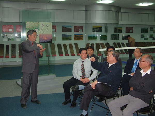 28日下午,路甬祥院长一行来到南京土壤所视察并听取重大科研项目进展情况汇报。在视察中,路甬祥院长充分肯定了南京土壤所园区改造的成果以及集中管理大型仪器设备,实现资源共享的举措。在新建成的土壤标本馆,路甬祥院长说,现在的标本馆与5年前来看时相比,标本的收藏和展示条件发生了根本性的变化。作为我国收藏土壤标本最齐全的标本馆,路甬祥院长希望南京土壤所积极与国土资源部、农业部联系和合作,争取将土壤标本馆办成国家的标本馆,让近6万个宝贵的土壤标本发挥更大的作用。随后,路甬祥院长一行听取了重大项目进展汇报。史学正、骆永明、杨林章先后汇报了由南京土壤所主持目前正在实施的“土壤质量演变规律与持续利用”、“长江、珠江三角洲地区土壤和大气环境质量变化规律与调控原理”2个973项目以及“太湖河网区面源污染控制成套技术”国家重大科技专项课题的工作进展和已取得的阶段性研究成果。路甬祥院长在听取汇报的同时不时提问与大家共同探讨,希望南京土壤所能够充分利用现在承担的一系列重大项目的优势并争取继续滚动,更广泛地联合国内相关部门和单位,进一步摸清我国尤其是粮食主产区土壤资源和生态环境的质量状况和演变规律并定期公布,将研究与技术成果推广到全国,为国家的粮食安全和生态环境建设做出更大的贡献。最后,路甬祥院长等还饶有兴趣地参观了南京土壤所近期在江苏、浙江开展的我国7000多年前古水稻土的发掘和研究工作展示。 |