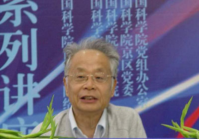 何祚庥院士在中国科学院创新案例系列讲座第三场报告会上做报告。