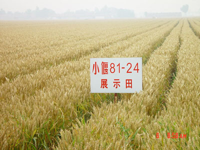 “小偃81”新品系具有良好推广前景。 “小偃81”新品系是遗传发育所植物细胞与染色体工程国家重点实验室李振声院士带领的研究组,历经十多年的小麦高效利用土壤营养元素、提高光合效率、高产株型结构研究和对大量种质资源鉴定筛选的基础上,于1996年利用“小偃54”与“8602”杂交,采用系统选择和重要特性鉴定相结合的方法育成的优质、高产与稳产小麦新品系。该品系的特点,一是群体结构比较合理,丰产性状好。分蘖成穗率高,适宜亩穗数40-45万,穗粒数30-35粒,千粒重38克左右,穗粒重三者比较协调;秸秆韧性较好,抗倒伏;后期成熟落黄较好,大面积种植具有亩产550kg以上的潜力;二是适应范围广。桓台及其他地区试验示范均表现出良好的丰产性能;三是籽粒品质较好,属硬质麦,角质率80%以上,出粉率高,面粉白度好。