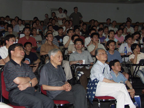 郝柏林院士从“复杂系统的特征、演化的描述、统计考虑的重要性、线性和非线性、对称有序和组织、临界现象和自组织临界现象、相变和涨落、对社会科学研究的希望”等方面全面阐述了自然科学与社会科学的“大交叉”。郝柏林用通俗的语言、恰当的比喻、生动的事例以及他个人对问题的独到的见解、激昂的演讲风格赢得了听众的阵阵掌声。