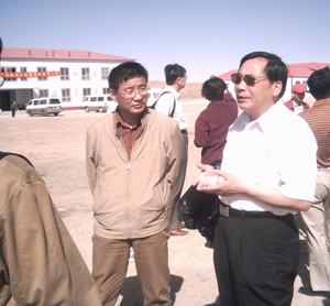 听完汇报后蒋协助主任表示,中科院党组十分重视西部研究所的工作,今年2月份的院长办公会上,路甬祥院长提出中科院党组组织有关人员到西部考察、学习。他说,听说现场是“天上无飞鸟,地上不长草”,吃水、吃菜都要到敦煌、格尔木、大柴旦拉,一吨水就要上百元,条件十分艰苦。今天,目睹这里的情况我们十分感动。这次,中科院院办公厅、院工会、京区组织部、宣传部的同志们,协同各大新闻媒体记者组成共30人的考察团到盐湖所东台基地来,其目的在于:中科院进入知识创新工程之后,条件有很大改善,但是有些院所科研人员仍在非常艰苦的条件下工作,这次考察团“西部行”是亲身体会一下,同时认真学习、了解科研人员所从事的工作,所做的贡献,给更多的科学家、科研项目以深入的宣传,并为庆祝中国科学院成立55周年做前期准备。