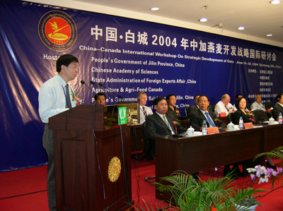 6月24日,由吉林省人民政府、中国科学院、国家外国专家局、加拿大农业部等共同组织的“2004年中加燕麦开发战略国际研讨会”在吉林省白城市召开。中国科学院副院长李家洋院士出席会议并在开幕式上做重要讲话。 6月24日,由吉林省人民政府、中国科学院、国家外国专家局、加拿大农业部等共同组织的“2004年中加燕麦开发战略国际研讨会”在吉林省白城市召开。中国科学院副院长李家洋院士出席会议并在开幕式上做重要讲话。
