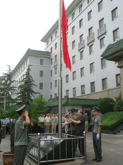 在中国共产党建党83周年之际,7月1日清晨,中国科学院机关举行隆重的升国旗仪式,全国人大常委会副委员长、中国科学院党组书记、院长路甬祥在升旗仪式上代表院党组发表讲话。