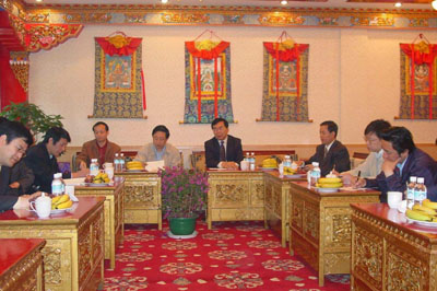 考察团与西藏自治区政府吴英杰副主席及相关部门的领导进行了座谈。吴英杰副主席对我院通过选派科技副职,以人才合作推动科技合作的方式给予了高度评价。白春礼副院长表示我院将采取多种形式继续加强与西藏在科技和人才方面的合作,在院地合作上取得更多的成果。在座谈会上,双方还就人才方面进一步加强合作和科技成果的转化进行了深入探讨。广州分院党委书记杨新潮、成都山地所党委书记乔建平、院人教局副局长兼院科技副职办公室主任李和风、院科技副职办公室副主任申桂华等参加了座谈。