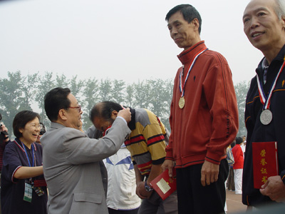 中国科学院离退休干部工作局局长吴保祖为运动员颁奖。