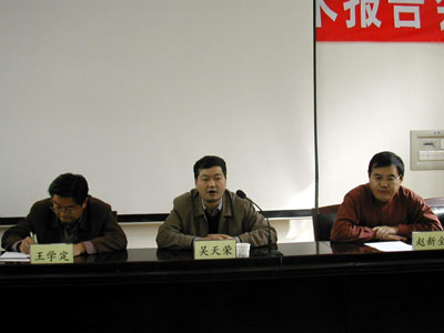 王学定书记首先代表中科院党组宣读了西高所新一届领导班子成员的任命决定。随后在会上发表了重要讲话。他回顾了西高所上一届领导班子在学科目标凝练、人才队伍建设以及园区建设等方面工作所取得的成绩,对上届班子做出的成绩给予充分肯定,并对新一届领导班子提出了明确的要求:希望新一届领导班子近期要做好学习党的十六届四中全会精神的工作部署,进一步认真学习马列主义、毛泽东思想、邓小平理论和“三个代表”重要思想,学习十六届三中全会提出的科学发展观,学习我院“以人为本、创新跨越、竞争合作、持续发展”新的科技发展观。要在学习的同时,建立起一个学习型的组织、学习型的团队,要以学习推动来我们的发展。新班子要更加努力的在研究所的发展,学科方向、人才队伍建设、科研开发、创新文化建设、党建以及管理工作方面进行做进一步的探讨,要按照院党组提出的“创新跨越、持续发展”要求,不能满足于现状,要在创新方面树立一个进慢则退的思想,要有一种创新的思维、创新的想法,把我们的工作往前再推一步,团结起来,凝成一股绳,带领下西高所全体职工,更进一步的面向世界科技前沿,面向国家战略需求。使西高所更加辉煌、更创辉煌,真正能够可持续发展。