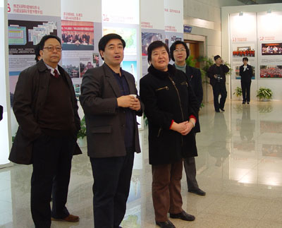 走进大厅,在讲解员的带领下,余效明副审计长细心观看了中科院科技创新发展的历程及党和国家领导人对中科院的关怀。整个展览分两大部分,即综合馆和成果馆。展览浓缩了中国科学院实施知识创新工程6年来的改革、创新、发展历程,通过生动的文字、照片、图表、实物、模型,简要汇报了中国科学院所取得的重要科技创新成果。王德顺、李志刚分别介绍了中科院开展知识创新工程试点工作以来的人事制度改革、评价制度改革和资源配置、国有资产管理体制的情况,以及中国科学院针对国家需求在重大公益性科技创新、重要基础研究领域自主研发等方面所做出的重大科技贡献。