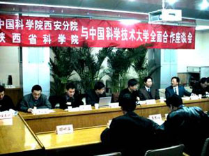 西安分院与中国科学技术大学共同召开全面合作座谈会。 12月14日,中国科学院西安分院、陕西省科学院与中国科学技术大学在西安召开了全面合作座谈会,会后,双方签定了全面合作协议。参加座谈会暨协议签定仪式的有以中国科学技术大学党委常务副书记、副校长许武带队的科大各学院院长等10人。西安分院、陕西省科学院党组书记、常务副院长周杰,副院长沈茂才和分省院研究所所长书记以及分省院各处室负责人等共计30多人。