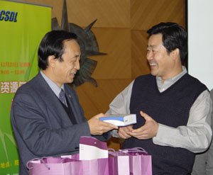 随后沈颖书记表示文献中心是院下属机构,多年来得到院领导和各个工作局的支持,工作上取得了很大的进展,“随意通”是文献情报中心新研制的分布移动用户管理信息服务设备,在新年来临之际以服务的形式向院领导和各个局的同志表示感谢。