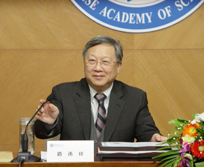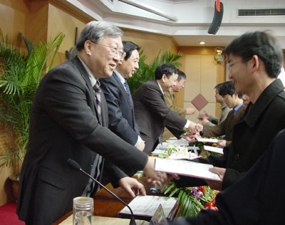 中国科学院院长路甬祥院士向获奖的研究生导师和同学颁奖。
