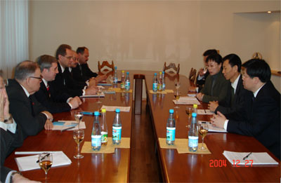 吉林省陈晓光副省长、中科院长春分院苏阳副院长与新西伯利亚州V.A.多罗贡斯基州长和俄科院西伯利亚分院L.N.多布列佐夫院长举行会谈。 应俄罗斯联邦新西伯利亚州政府、俄罗斯科学院西伯利亚分院邀请,吉林省人民政府和中国科学院长春分院联合代表团于2004年12月24日至12月29日访问了新西伯利亚州和俄科院西伯利亚分院。访问期间,代表团团长、吉林省副省长陈晓光教授分别就具体落实在长春市和新西伯利亚市建立中俄科技园问题与新西伯利亚州V.A.多罗贡斯基州长和俄科院西伯利亚分院院长L.N.多布列佐夫院士进行了会谈。2004年12月28日,吉林省副省长陈晓光、中科院长春分院副院长苏阳、俄联邦新西伯利亚州副州长G.A.萨巴什尼科夫和俄科院西伯利亚分院学术秘书长V.M.福明院士分别代表吉林省人民政府、中国科学院长春分院、俄联邦新西伯利亚州政府和俄科院西伯利亚分院签订了《中国吉林省人民政府、中国科学院长春分院代表团访问新西伯利亚联合声明》。