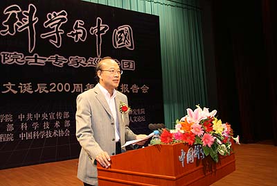 5月27日,“科学与中国”院士专家巡讲团纪念达尔文诞辰200周年专题报告会在中国科学院研究生院礼堂隆重举行。全国人大常委会副委员长、中国科学院院长路甬祥院士应邀作题为“纪念达尔文”的专题报告。报告会由中国科学院副秘书长、中科院研究生院常务副院长王恩哥院士主持。来自中国科学院机关院士工作局、生物局、北京分院、生物物理所、古脊椎所、植物所、动物所、遗传所、文献中心、基因组所、微生物所、自然科学史所等有关单位的研究人员和管理人员、中国科学院研究生院的师生,以及在京生命科学和医学学部的院士近700人参加报告会。 路甬祥说,今年是达尔文诞辰200周年,也是《物种起源》发表150周年。世界各地都在纪念这位进化论的创始人,因为他不仅是生物学史上划时代的人物,是科学史上的巨匠,而且也是一位人类思想史上的伟人。他富有创造的思想,跨越了生物学领域,跨越了他所生活的时代和国家,至今仍对世界生物学的发展,对其他自然科学和人文社会学科的发展,对人类的世界观、价值观,产生着深刻而深远的影响。 在报告中,路甬祥首先简要回顾了达尔文的科学生涯,高度赞扬了达尔文热爱自然、热爱科学、严谨治学、勇于创新的科学精神。他说,热爱自然、热爱科学是科技创新最原本的动力。达尔文之所以后来成为伟大的科学家,这与他对于科学和自然有着浓厚的兴趣有很大的关系。由此我们可以认识到,热爱自然、热爱科学,是科技发展的动力之一,创新教育应该有助于培育兴趣、鼓励探索、发掘潜力、塑造情操、认识世界、培育科学思维方式、提高洞察力、分辨力、鉴赏力和独立工作的能力。路甬祥说,科学源于实践与思考,五年的环球科学周游考察是达尔文科学思想的基础和来源。参加贝格尔号航行是达尔文科学人生中的决定性的经历。他之所以能有很大收获,是因为他具有超过常人的探索热情,细致入微的观察能力,持之以恒进行系统观察、分析、思考的耐性,以及充沛的精力,他表现出来的采集、整理、记录、分析能力和对自然现象极大的好奇心,成为他成就的基础,正所谓机遇属于那些做好准备的“有心人”。 路甬祥在介绍了达尔文探索科学真理,不迷信权威、敢于挑战传统观念的勇气,达尔文细致观察、缜密思考、系统的研究的科学方法以及治学扎实,没有丝毫的浮躁和急于求成的功利心的科学精神后说,“达尔文敢于冲破传统观念,不畏艰难、锲而不舍、勇于创新、善于创新的科学精神,生命不息、探索不止的顽强毅力,忘我追求科学真理,实事求是的科学态度,严谨踏实、系统求索的治学方法,以及谦虚谨慎、虚怀若谷的博大胸怀,都成为后来人的典范。” 路甬祥在报告中深入浅出地介绍了达尔文生命进化理论,肯定达尔文对科学的巨大贡献。他说,达尔文创立的是一个综合系统的生命进化理论,具有丰富的科学内涵和深远而广泛的影响。达尔文进化论认为,各种生物自从产生以来,就发生了变化进化;这个观点动摇了基督教的“神创说”基础。生物进化有其自然动力,是一个自然选择的过程,在这个过程中,适应进化的生物保存了下来,不适应的生物遭到淘汰。人类是生物进化的产物。达尔文的进化理论是生物学上的一次革命性伟大的综合,正是由于达尔文理论的系统全面和综合,使人类第一次科学地解释了生机昂然、缤纷多彩的生命现象。 路甬祥说,达尔文在科学方法上也做出了很大贡献,从而使他的进化理论具备更加坚实的基础。正是由于达尔文在科学方法上的创新和发展,进化论成为生物学中第一个经过假说和检验的科学理论,生物学开始更加注重实证和理论假设和分析,开始告别传统的仅注重描述、分类和一般性阐释的博物学传统。 路甬祥认为,达尔文的进化论不仅极大地促进了生命科学的发展,推动了其他学科的发展,而且改变了人们的世界观。他说,达尔文的进化论从根本上动摇了基督教神学的基础,使人们开始从动态、变化和相互作用的角度看待自然,看待人类社会,看待世界,一种进化的生命观、价值观和世界观逐渐在社会中得到普及。达尔文的进化论中自然观和运动观为唯物论和辩证法提供了有力的支撑,曾经得到马克思和恩格斯的高度赞扬,恩格斯曾将达尔文和马克思的发现相提并论:“正像达尔文发现了有机界的发展规律一样,马克思发现了人类历史的发展规律。”达尔文的进化论将人类看作自然进化中的一个环节,从而端正了人们对自然和人与自然关系的看法,为后来形成的可持续发展、环境保护直至科学发展观奠定了知识和认识论的基础。达尔文的进化论对于社会思潮的进步也起到过一定的作用。 路甬祥在报告中指出,达尔文的进化论已经提出了150周年,今天,虽然科学家们在生物进化的某些具体问题上依然存在着争议,然而,经过150年的研究,科学家们对于生物进化的图景、模式和机制已有了比较清晰的认识,绝大多数人认同达尔文的进化论范式,达尔文的进化论依然具有着强大的生命力,依然对于我们具有着巨大的启迪作用。 路甬祥最后说,“达尔文为我们留下了一笔丰富的精神财富。他的高尚品格值得我们学习,他创造的科学理论至今仍焕发着活力。科学技术的发展需要在继承前人的基础上不断创新。在纪念达尔文之日,我们要继承和发扬他那种勇于创新、善于创新