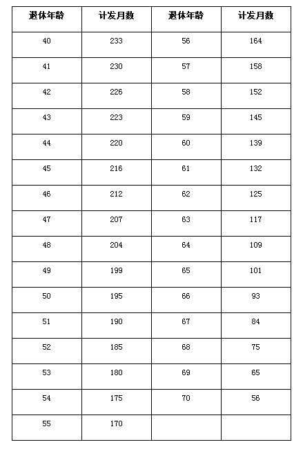 个人账户养老金计发月数表