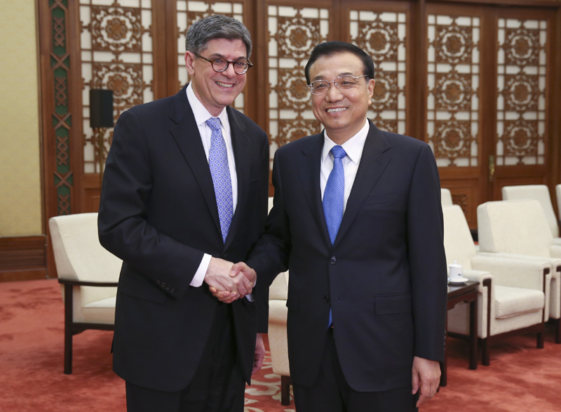 国务院总理李克强3月30日下午在人民大会堂会见美国总统特别代表、财政部长雅各布·卢。