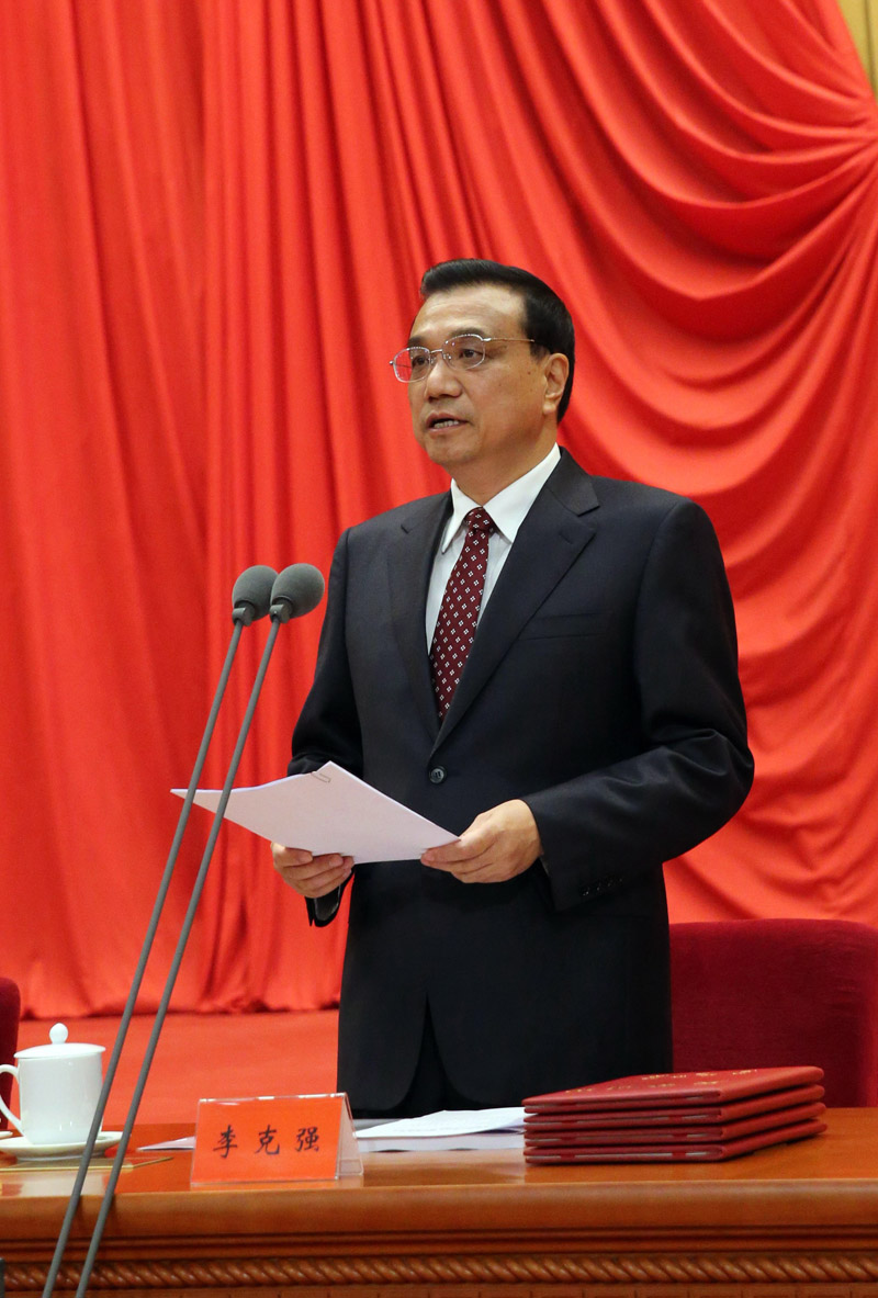 中共中央政治局常委、国务院总理李克强主持大会。新华社记者 刘卫兵 摄