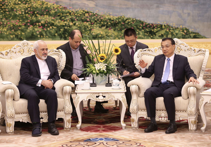 国务院总理李克强9月15日下午在人民大会堂会见伊朗外长扎里夫。