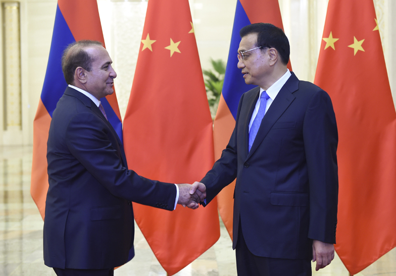 李克强指出,中方愿同亚方加强发展战略和政策对接,积极推进有色金属、建筑材料等领域的产能合作。中国政府支持本国企业积极参与亚“北南”公路、核电站等大型基础设施项目建设,不断扩大两国航空、旅游等合作,拓展互利合作新空间。