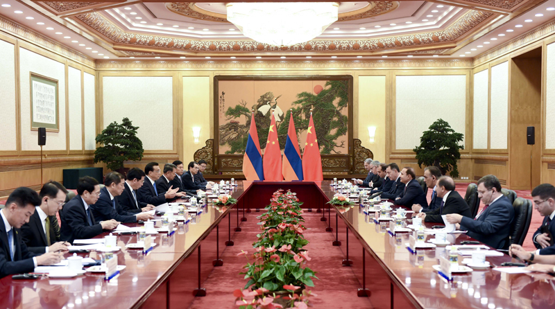 阿布拉米扬表示,亚中关系发展顺利,各领域合作取得积极成果。亚方欢迎中方企业参与亚公路、铁路等基础设施大项目建设,愿同中方积极开展能源矿产、水泥、平板玻璃等产能合作,加强轻工业、农业、旅游、航空等领域合作,扩大人文交流,将两国全方位合作关系推向新高度。