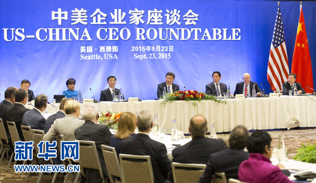 国家主席习近平9月23日在西雅图出席中美企业家座谈会。