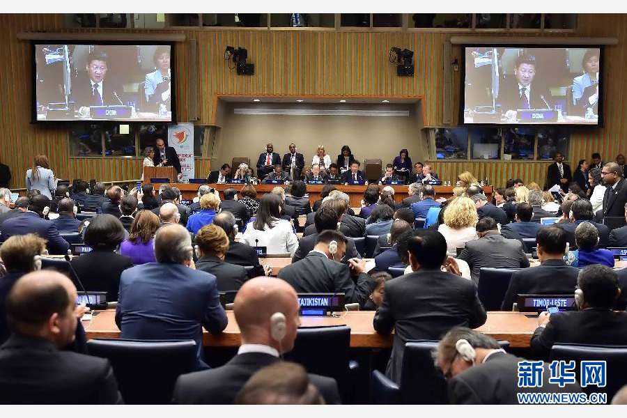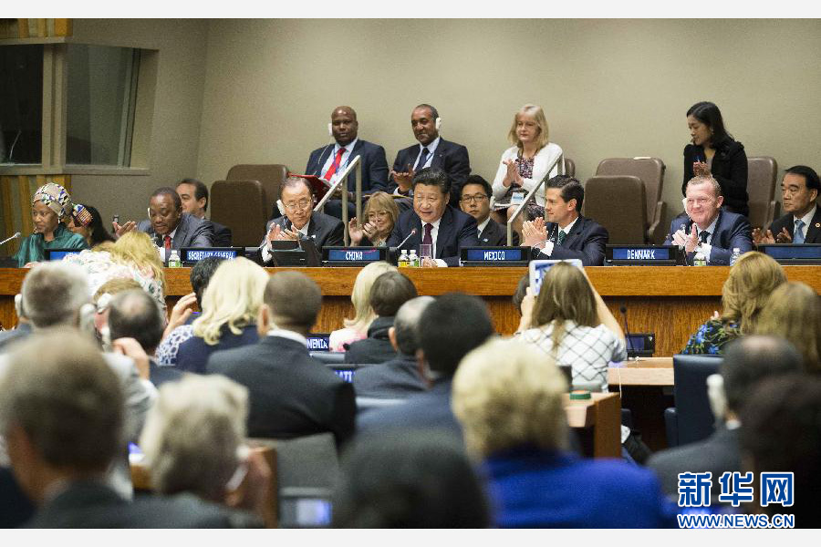 9月27日,国家主席习近平在纽约联合国总部出席并主持全球妇女峰会。习近平在开幕式上发表题为《促进妇女全面发展 共建共享美好世界》的重要讲话。新华社记者黄敬文摄