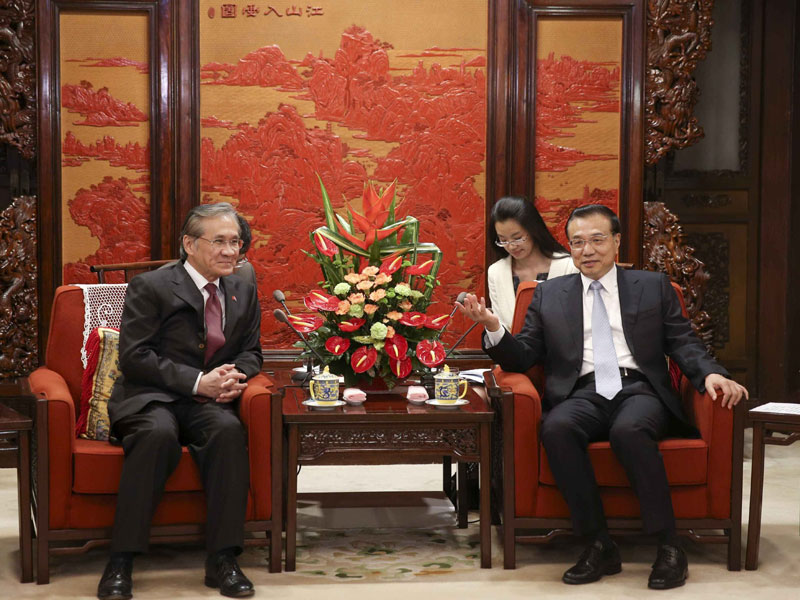 国务院总理李克强10月9日下午在中南海紫光阁会见泰国外长敦·巴穆威奈。