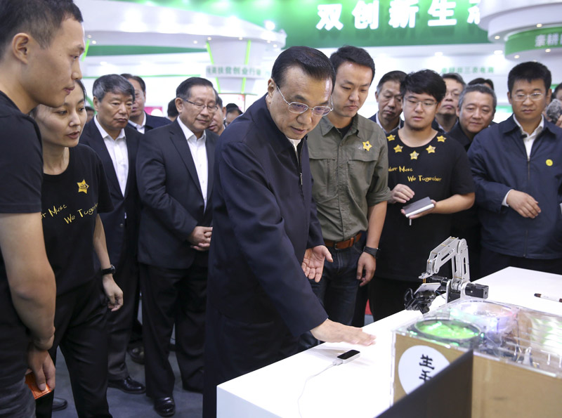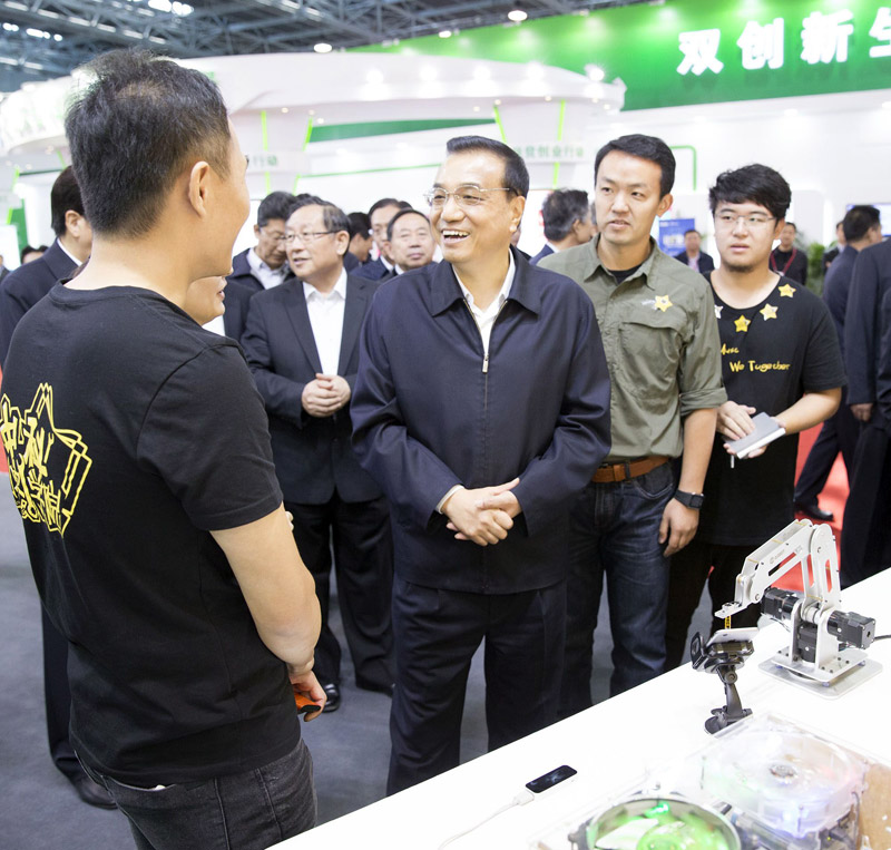 李克强10月19日在全国双创周考察中科创客学院项目,了解到这里为创业者提供科技信息资源、创业创新导师,以开放式技术平台孵化创客项目产品。总理说,这是一所没有围墙没有边界的“大学”,希望你们不断扩大辐射范围,传递更多创业创新的基因密码。