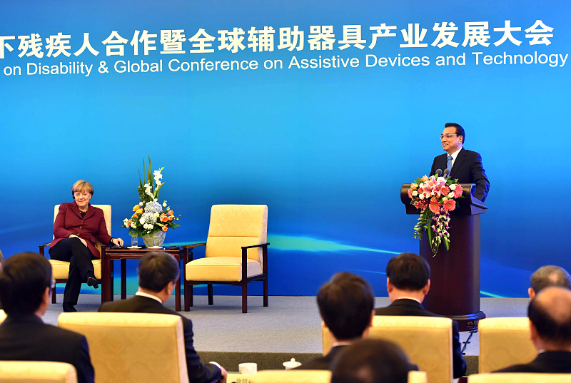 国务院总理李克强10月29日中午同德国总理默克尔在人民大会堂共同出席亚欧会议框架下残疾人合作暨全球辅助器具产业发展大会开幕式并致辞。