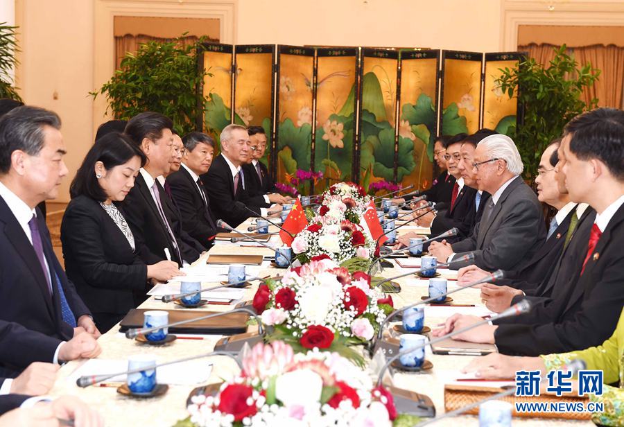 11月6日下午,国家主席习近平在新加坡总统府会见新加坡总统陈庆炎。新华社记者 饶爱民 摄
