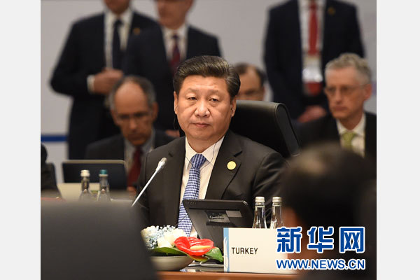 11月15日,国家主席习近平在土耳其安塔利亚出席二十国集团领导人第十次峰会第一阶段会议。新华社记者李学仁摄