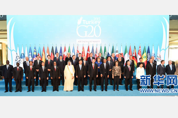 11月15日,二十国集团领导人第十次峰会在土耳其安塔利亚举行。国家主席习近平出席并发表题为《创新增长路径 共享发展成果》的重要讲话,强调二十国集团要加强宏观经济政策沟通和协调,推动改革创新,构建开放型世界经济,落实2030年可持续发展议程。
