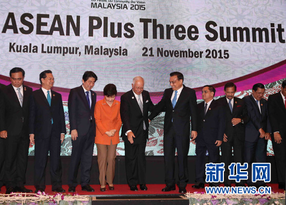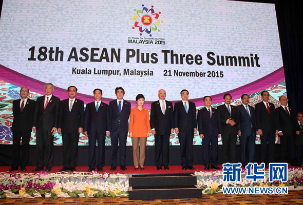 国务院总理李克强当地时间11月21日下午在吉隆坡国际会议中心出席第十八次东盟与中日韩(10+3)领导人会议,东盟十国领导人以及韩国总统朴槿惠、日本首相安倍晋三共同出席。马来西亚总理纳吉布主持会议。